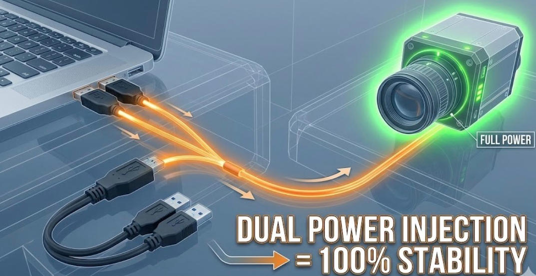 Standard USB 3.0 ports output a strictly limited 900mA. Over long distances, copper cables suffer from voltage drop (IR Drop). When you combine a power-hungry device with the power needed to drive the fiber optic engine itself, a single port simply cannot cope.