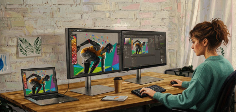 When using DisplayPort daisy chaining, you can connect up to four monitors on a desktop or three external monitors on a laptop, with the laptop’s built-in screen acting as the fourth display. The overall performance and stability depend on the capabilities of the computer’s graphics card (GPU), as the video signal bandwidth is shared across all connected displays.